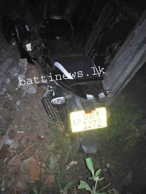 களுவாஞ்சிகுடி பொலிஸ் பிரிவிற்குட்பட்ட இன்று(25.06.20415) நள்ளிரவு 12.10 மணியளவில் கல்முனை,மட்டக்களப்பு பிரதான பாதையில் செட்டிபாளையம் பிரதேசத்தில் மோட்டார் சைக்கிள் வீதியில் படுத்து இருந்த மாடுகள் மீது மோதுவதை தவிர்ப்பதற்காக வீதியை விட்டு விலகி வேலி மீது மோதி விபத்துக்குள்ளாக்கியது.